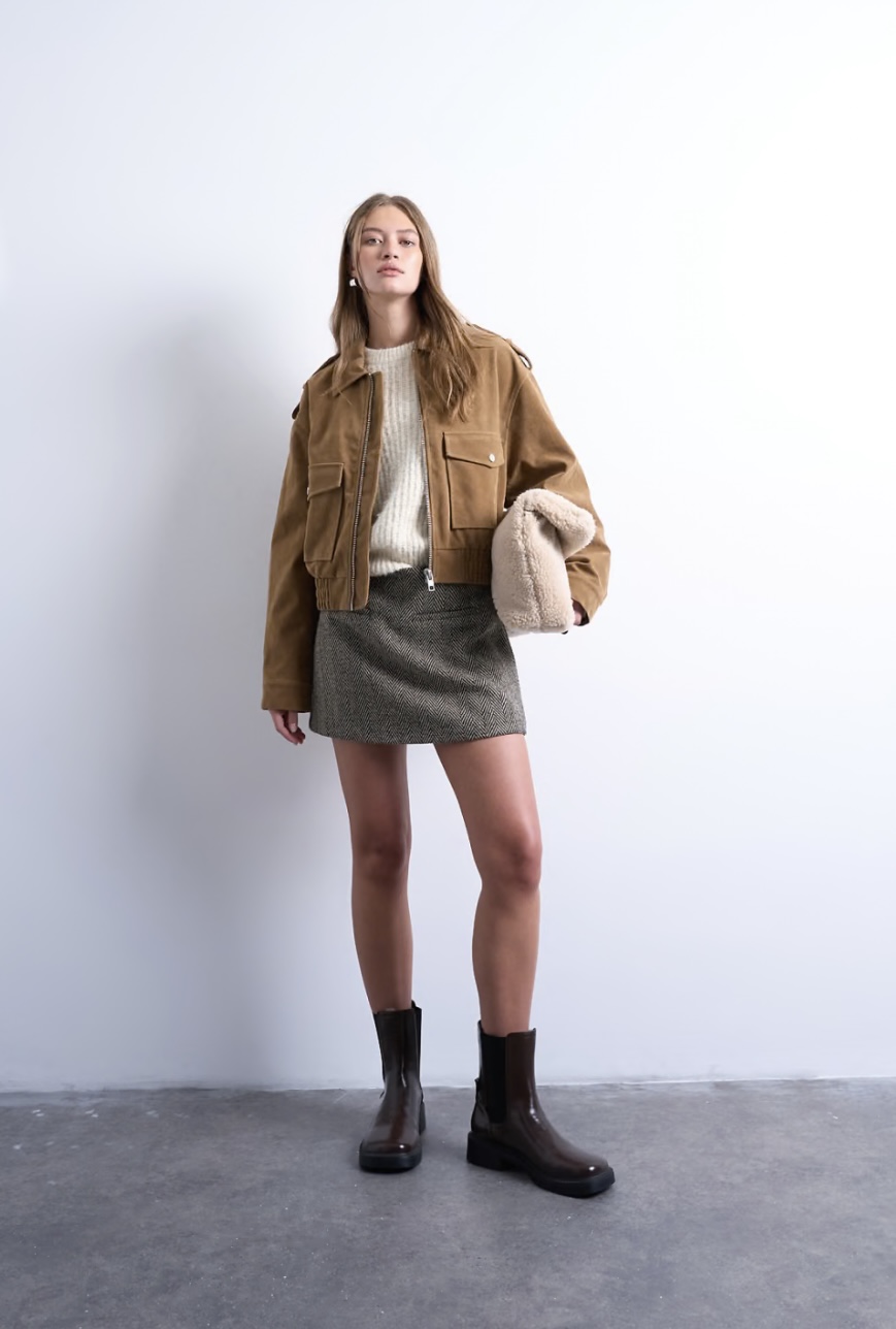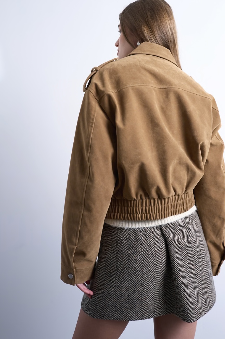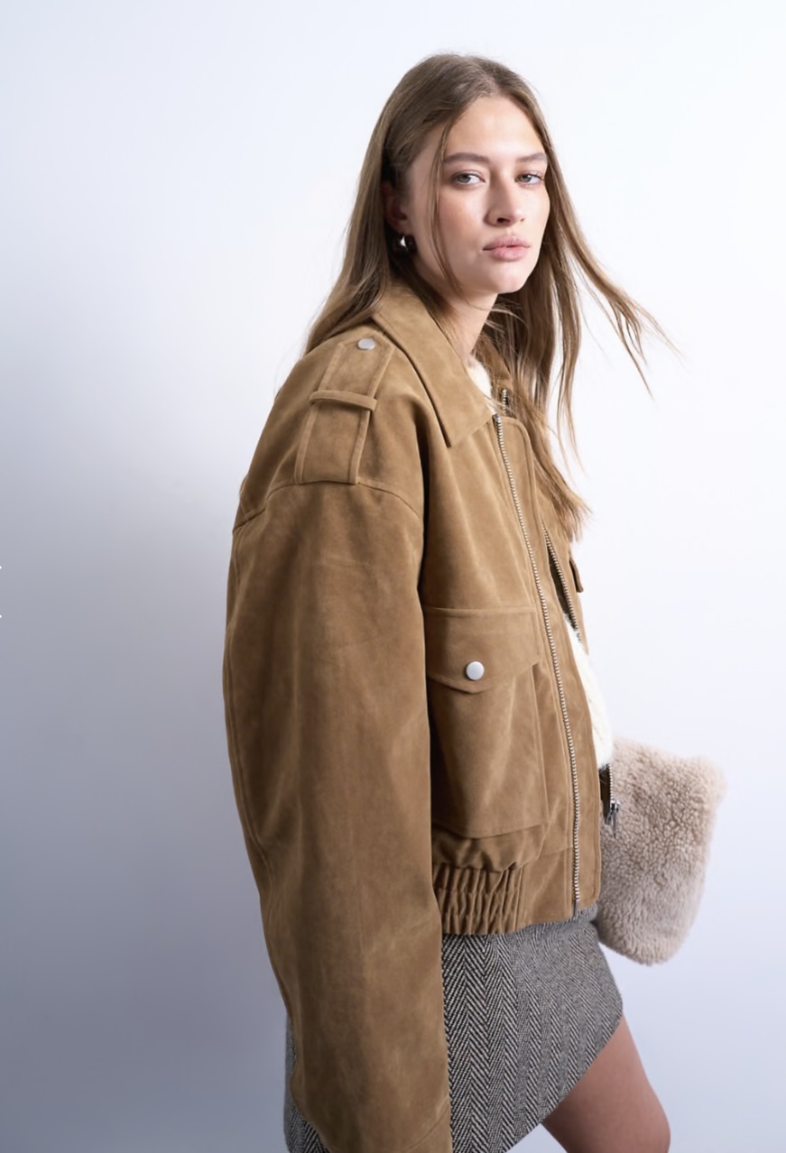 Women’s Brown Suede Bomber Jacket – Casual Winter Jacket for Stylish Everyday Wear